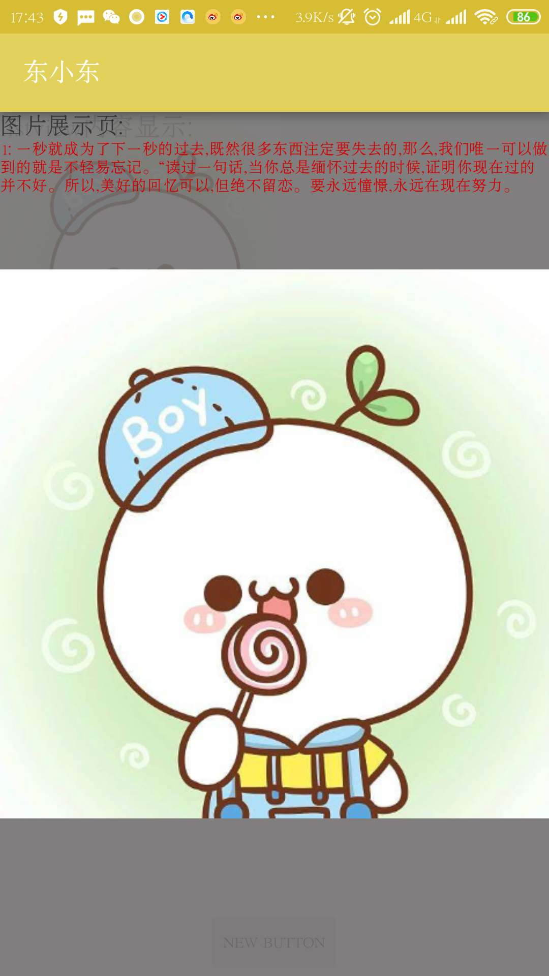 1 //得到内容 2 String cont=mMap.get("context").toString(); 3 4 //得到图片资源 5 int img=(int)mMap.get("img"); 6 7 //可自接通过此处改变控件上的某个图片显示 8 //图片显示控件,main_img=(ImageView)findViewById(R.id.main_img); 9 main_img.setImageResource(img);10 11 //开始Fragment12 getSupportFragmentManager().beginTransaction()13 .addToBackStack("xx1")14 //参数1为主布局id,参数2中构造方法要传入图像资源和展示内容15 .replace(R.id.main_view,new ImgFragment(img,cont))16 .commit();17 callbool=true;Activity的返回和退出:
