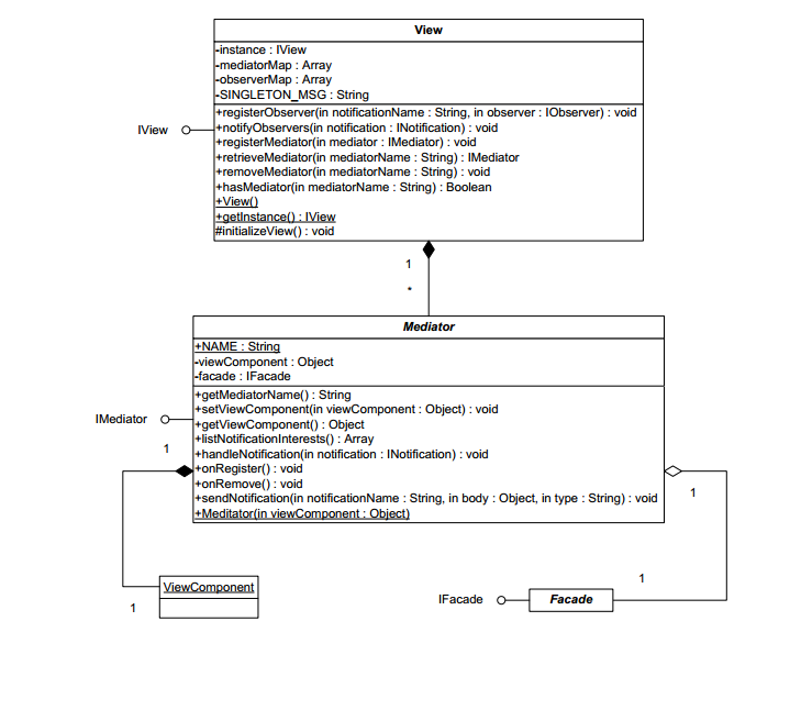 View类以单例的方式被实现并且提供了具体的IMediator实例的访问。