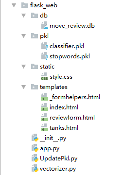 pkl:存放模型文件,stopwords.pk为停用词文件,classifer.pkl为模型文件。