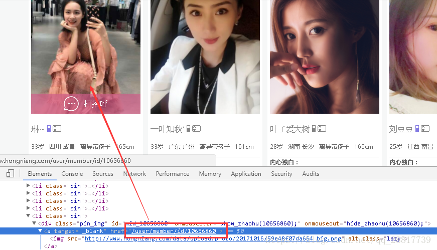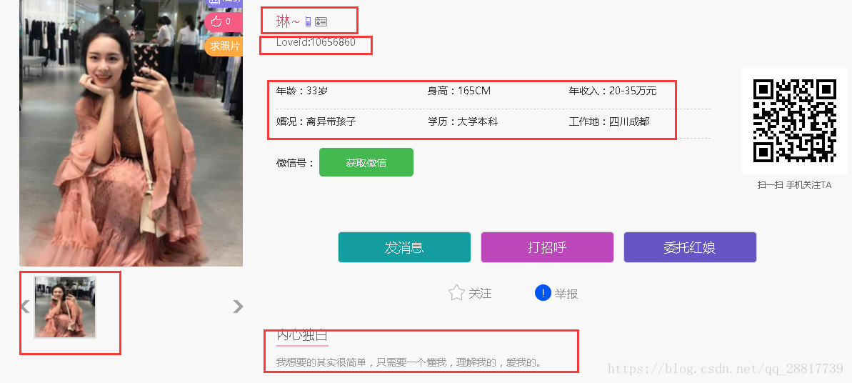 网页内容如下:我们想爬取所有相亲的 女用户。(男士的照片是在不是很好看,就爬女士的吧