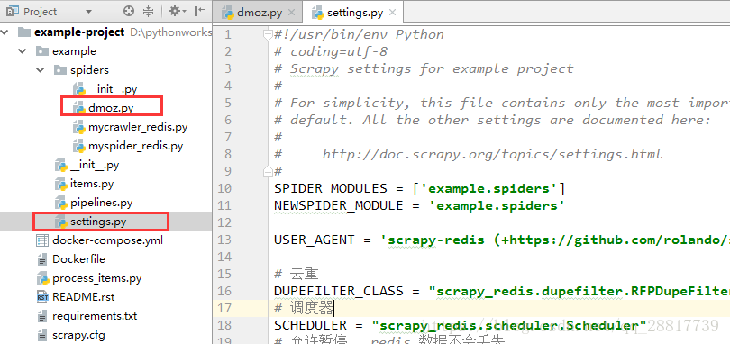 这里我们引入scrapy-redis 官方提供的例子,作为我们的参考。