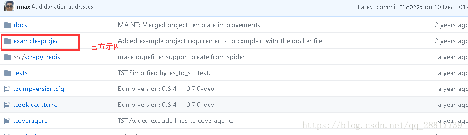 这个github工程就是 scrapy-redis 的源码,其中example-project 就是官方提供的示例。我们将这个工程都下载下来。
