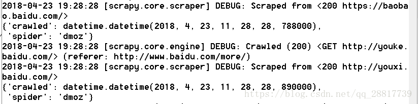 yield item将这个内容替换dmoz.py 的内容就可,再次执行一下,可以看到爬虫程序一直在执行。