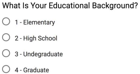 上图中的四个选项依次表示了不同的受教育程度,但却无法量化初级教育与高中的差别和高中与大学差别间的不同。定序数据缺乏对于特征间差别的量化使得它更多的只能用于评价利于情绪和用户满意度等一系列非数值特征。