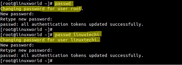 [root@linuxworld ~]# passwd[root@linuxworld ~]# passwd linuxtechi