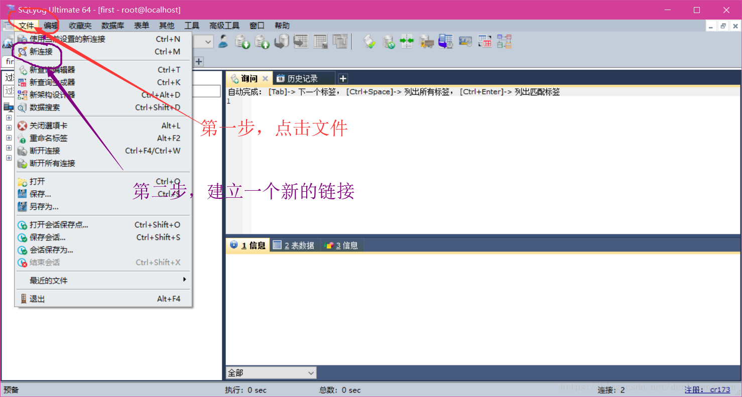 接我的上一个博客,我们下载安装好MySQL数据库和对应的SQLyog可视化图形工具之后。我们再来实际操作,在SQLyog中正确地链接MySQL,并通过数据库操作语句录入简单的数据。