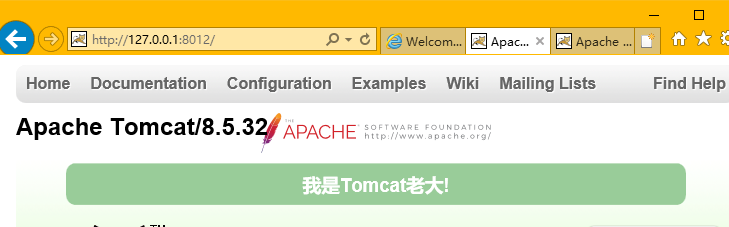 两个tomcat分别在8012和8022端口服务,注意为了区分是哪个tomcat上的网页,我首页改了下(位置在tomcat/webapps/ROOT/index.jsp)