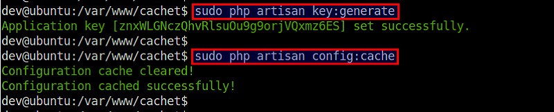 $ sudo php artisan key:generate$ sudo php artisan config:cache
