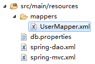 在`src/main/resources`下创建名为`mappers`文件夹,然后将`SomeMapper.xml`重命名为`UserMapper.xml`,并粘贴到`mappers`文件夹下: