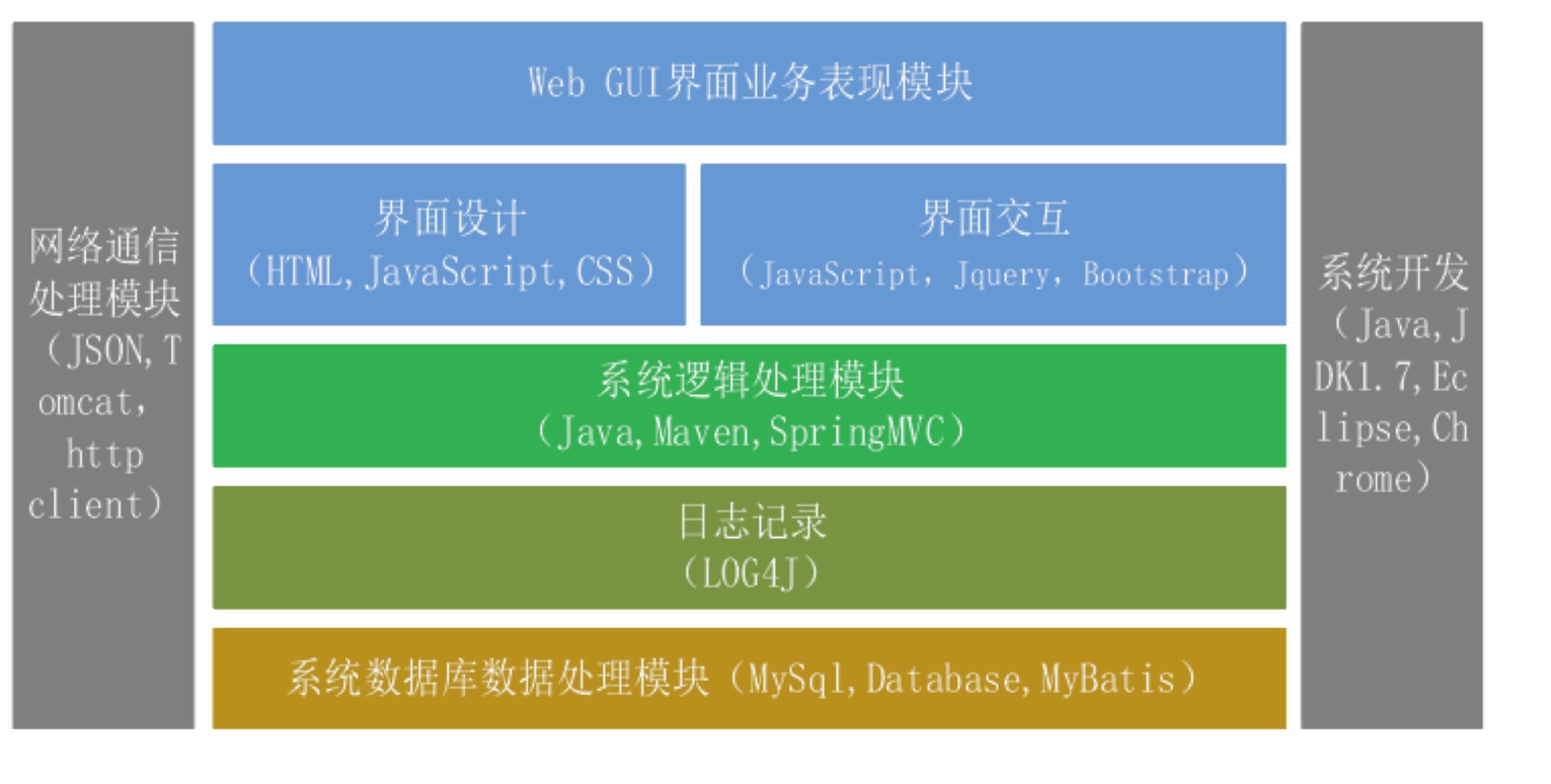 Spring 框架(包括 Spring MVC, Spring Core,Spring ORM, Spring AOP,Spring DAO, Spring Batch 等)My Batis, DBCP/JDBC 技术用于实现系统的整体框架,支持与数据层 My Sql, XML