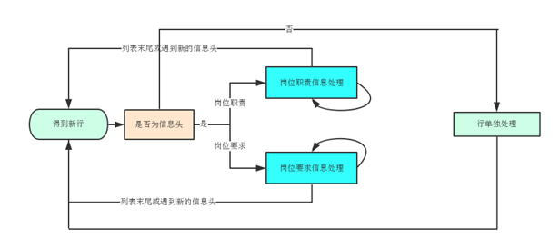 通过上述分析,就得出了这样一个处理流程:如果现在处理的信息属于头部信息(职责、要求等),则进入结构化处理流程,否则单独处理。