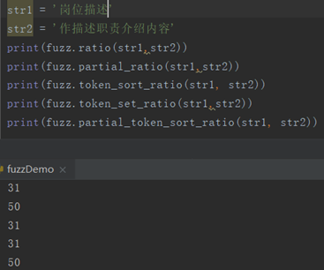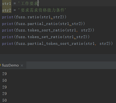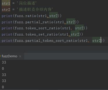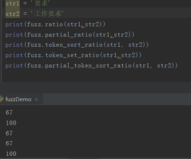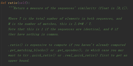 M是匹配的元素个数,T是字符串长度。所以针对partial的函数,我们可以用2/(len(thisStr))*100来判断字符串是否满足模糊匹配。