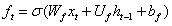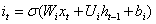 为LSTM单元最终输出,使用sigmoid function 作为activation function,