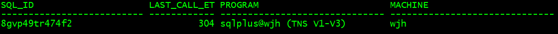 LAST_CALL_ET: 上一次调用到现在为止过了多长时间,单位为秒,途中显示过了304s (既可以理解为sql已经运行了304s)。