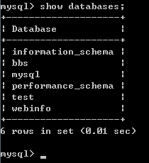 如果此时不知道MySQL有哪些数据库,使用显示所有数据库名语句:show databases; (注意结尾有英文格式下的分号)
