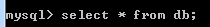 查看某一数据表的数据:select * from db; (db为mysql中的某个数据表)