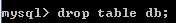 删除数据表:drop table db; (当前操作的数据库下数据表被完全删除,谨慎操作)