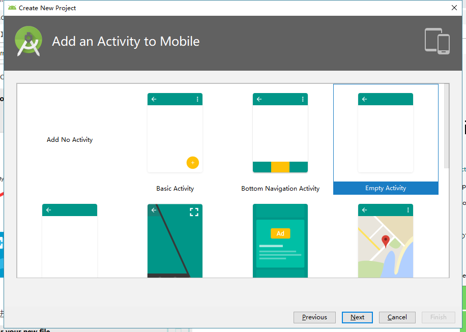 在http://www.android-studio.org/完成下载工作,我下载的版本是3.2.0。之后一路安装,最后没有SDK的需要安装一系列东西,准备开始创建第一个项目:
