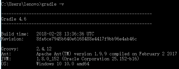 首先问题出在了,AS自动跑去下载外网的gradle。为了解决这一问题,我们从其他途径下载了适配AS3.2.0的gradle4.6,并将其解压在上述文件夹下。之后我们去PATH注册路径,成功配置后,进入控制台,输入指令gradle -v会看到成功安装。