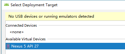 安卓开发与网站开发类似,同样是通过右上角这几个按钮进行运行和调试。运行后会有两种选择,分别为真机和模拟器。