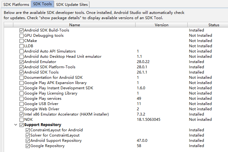 打开SDK Tools页面去安装这个软件……???玛德这不是installed?