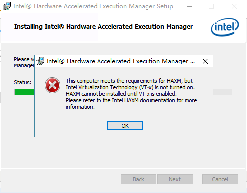 进入BIOS界面,打开VT。结束后回到原来的路径下,重新安装HAXM。