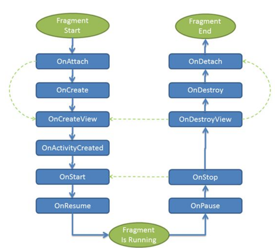 Fragment 的生命周期如图所示,关于每个方法的解释如下:
