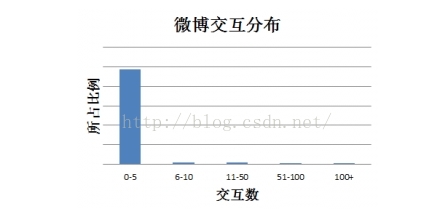 在学术研究与教学中,很多算法都有一个基本假设,那就是数据分布是均匀的。当我们把这些算法直接应用于实际数据时,大多数情况下都无法取得理想的结果。因为实际数据往往分布得很不均匀,都会存在“长尾现象”,也就是所谓的“二八原理”。下图是新浪微博交互分布情况: