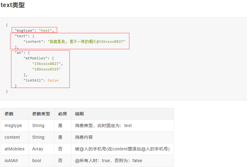 }; var response = await SendDingTalkMessage(new { msgtype, text, at }); return Ok(response);