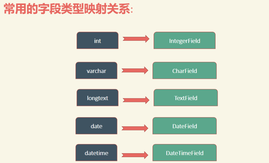 | TextField: 文本类型 | 映射到数据库中的text类型。 |
