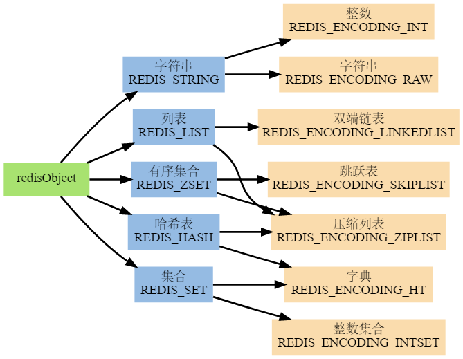 Redis五种数据结构对应的编码,图片来源:对象处理机制