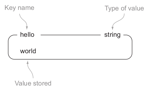 Redis的STRING和其他编程语言或则其他键值存储提供的字符串非常的相似。本文在使用图片表示键值的时候,通常会将键名(key name)和值的类型放在方框的顶部,将值放在方框的里面。