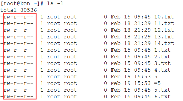 [root@ken ~]# chmod u+x,g+rw,o+r anaconda-ks.cfg