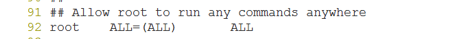 a. 配置sudo文件请使用“#visudo”,打开之后其使用方法和vim一致