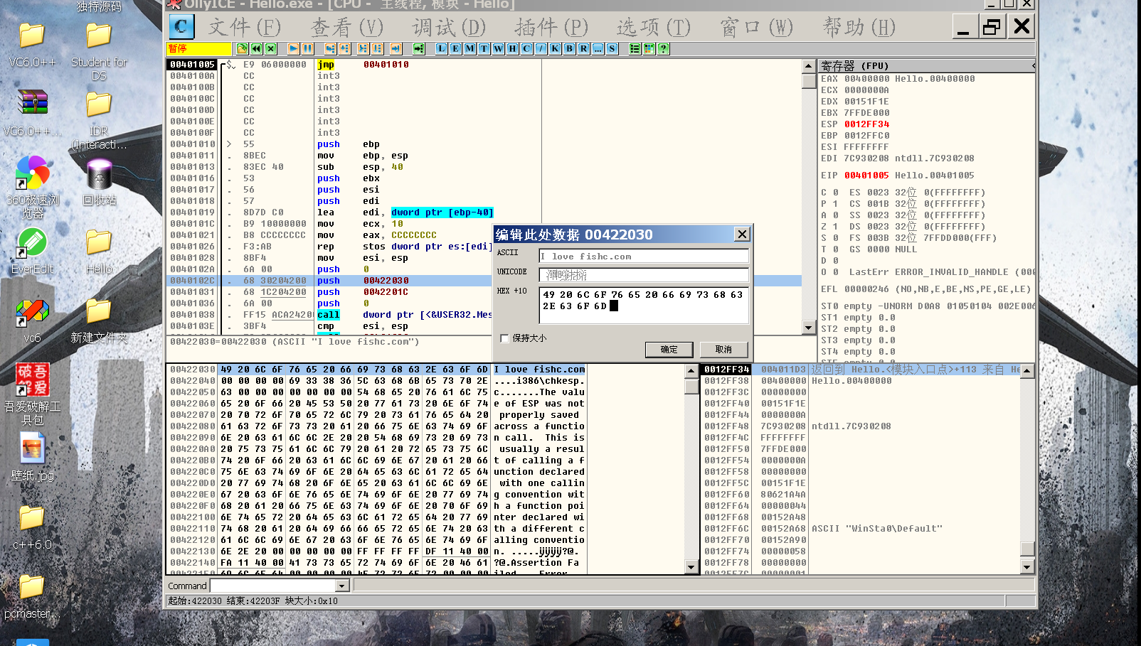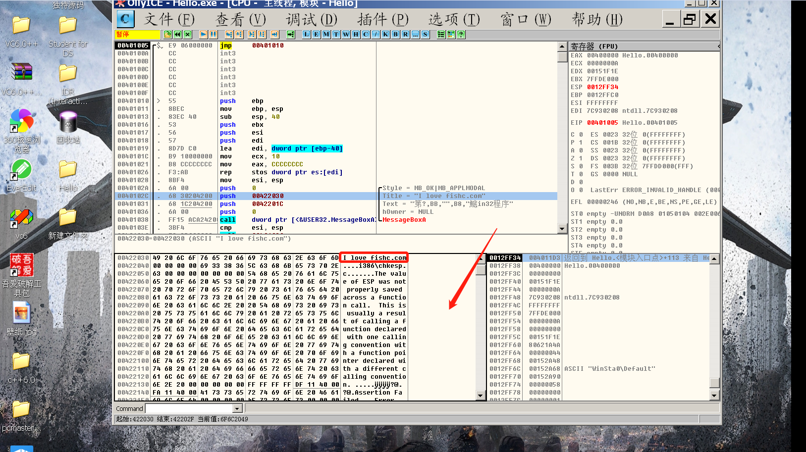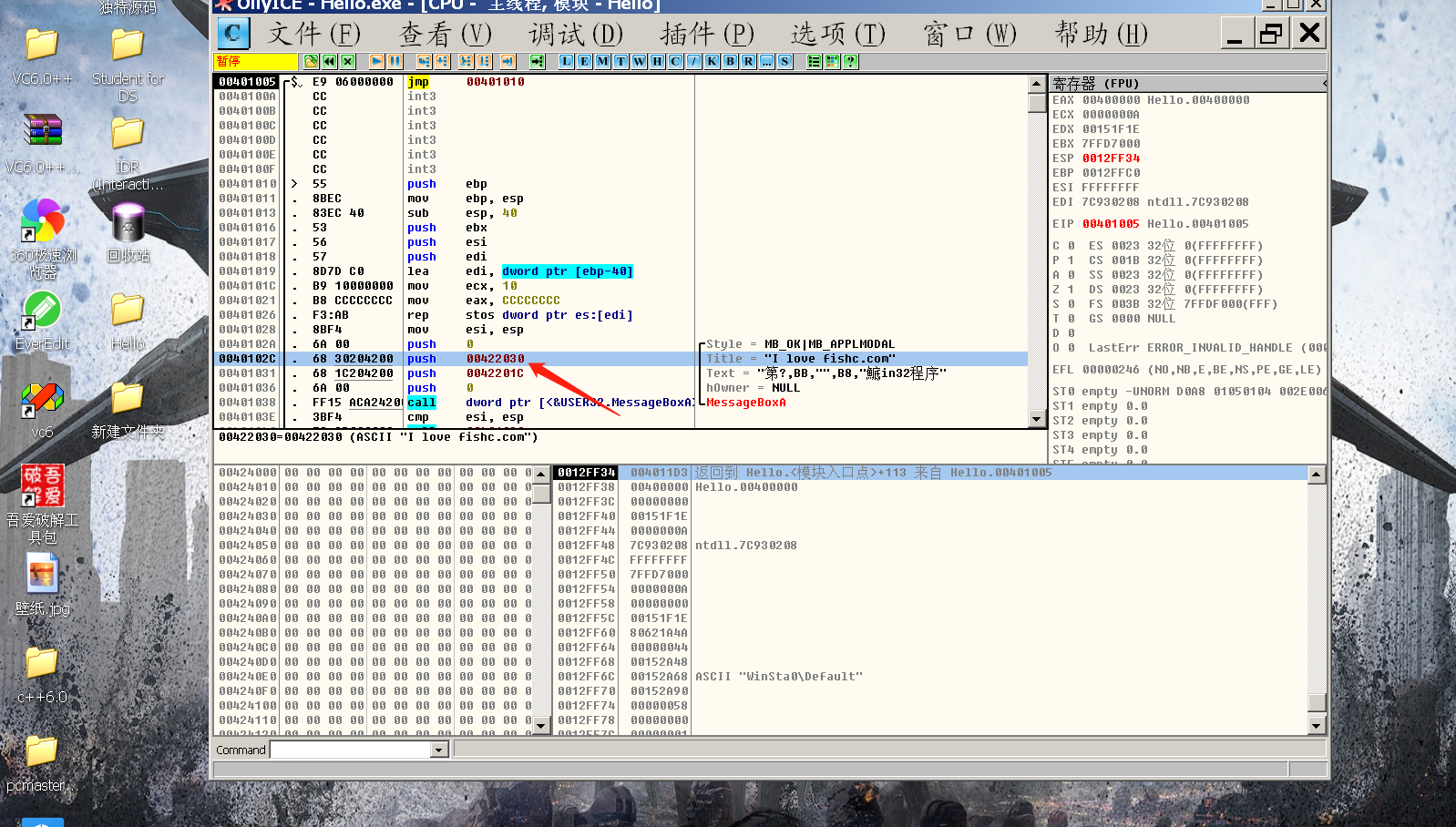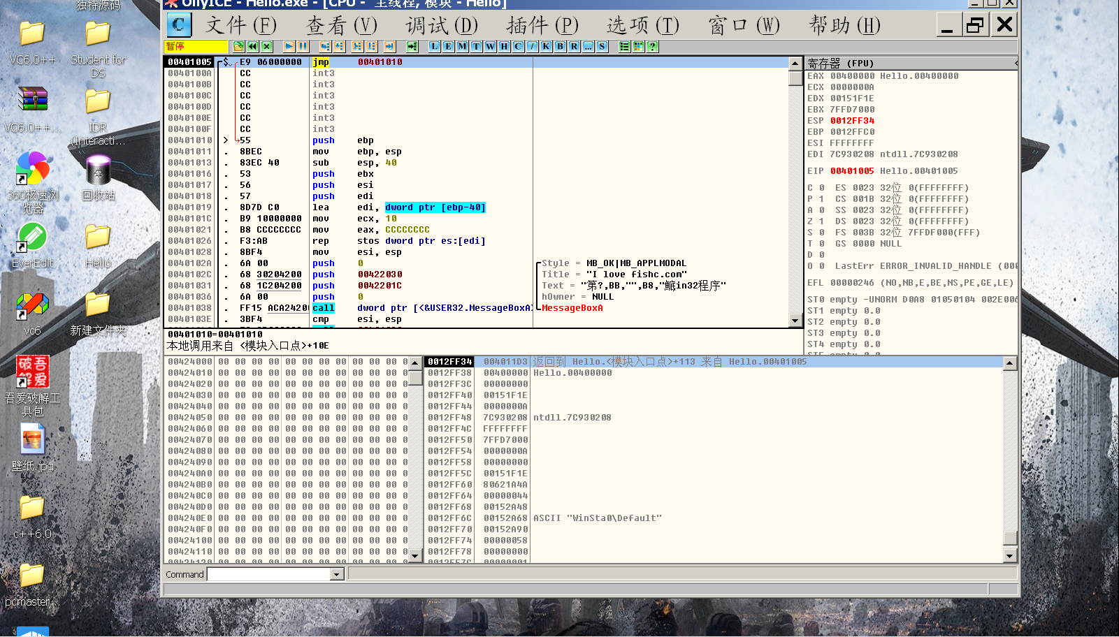 源文件为hello.exe,打开便出现如下,标题为l love fishc.com