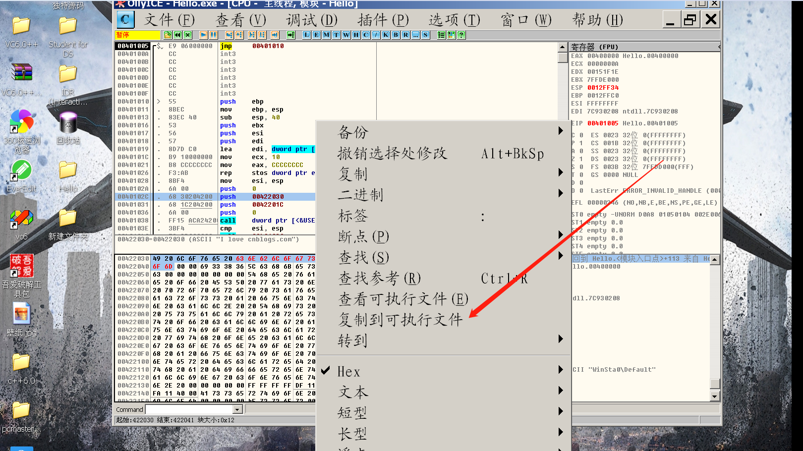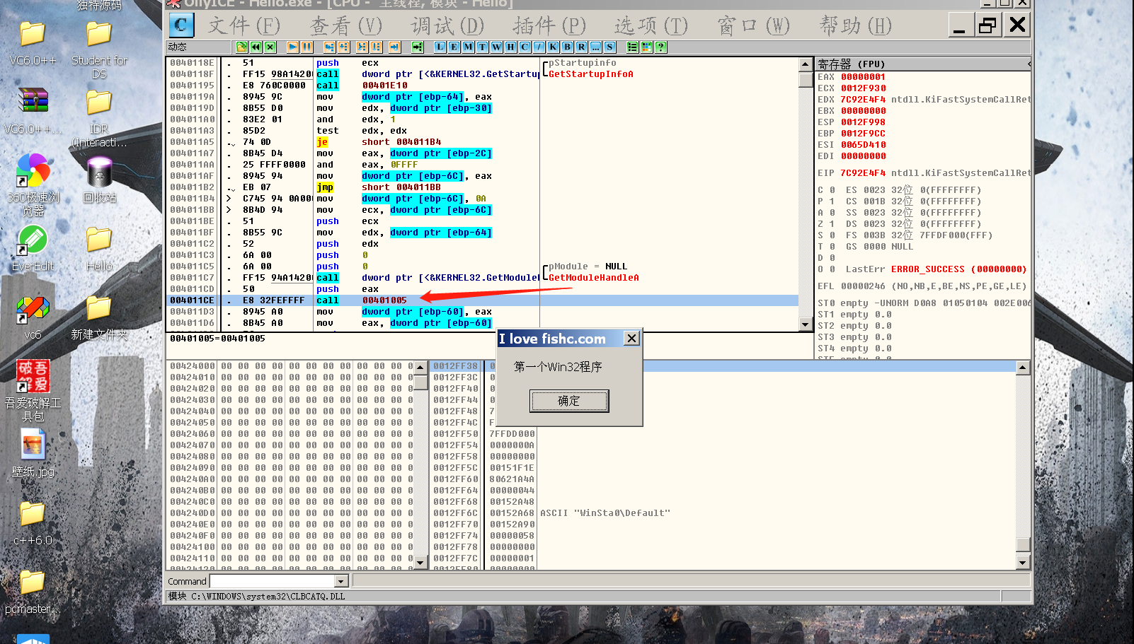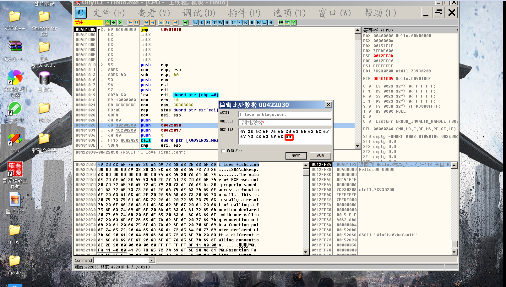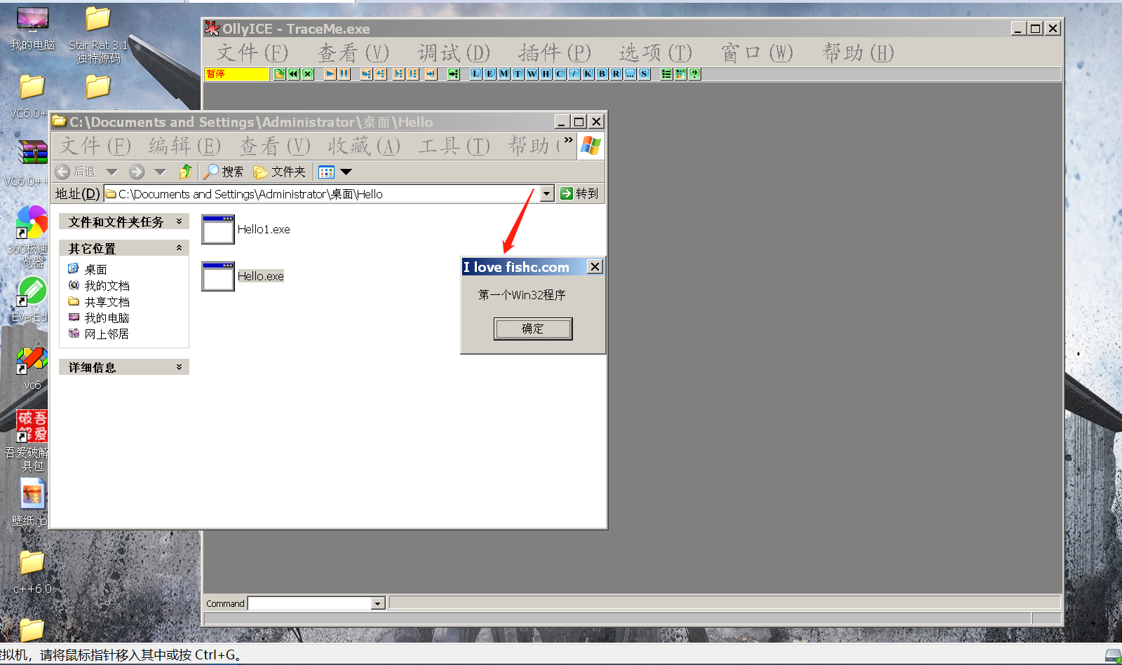 源文件为hello.exe,打开便出现如下,标题为l love fishc.com