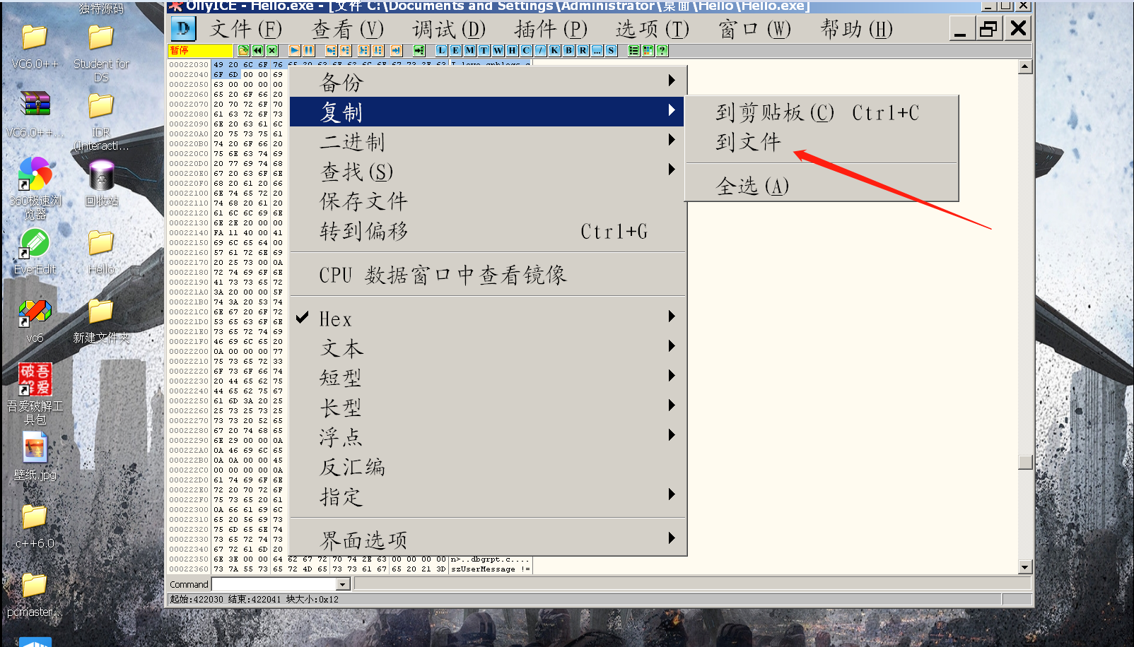 第三行是汇编代码 push是压入操作,意思应该是压入栈,后面是机器码,CTRL+G调用跟随表达式:输入该机器执行码;