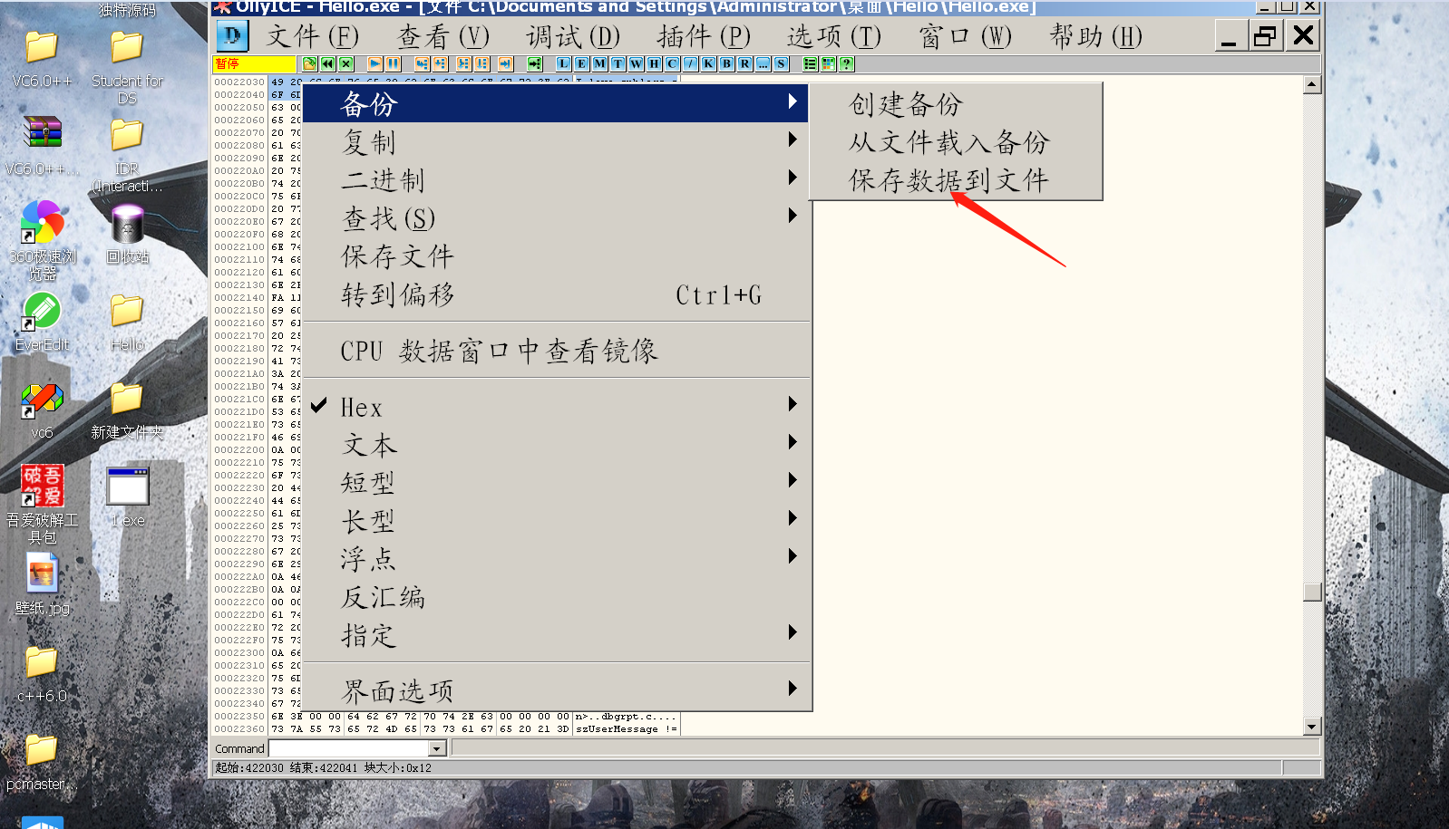 写完后还要加个00,表示字符串的结束,c,c++等都是这样的,然后执行保存;