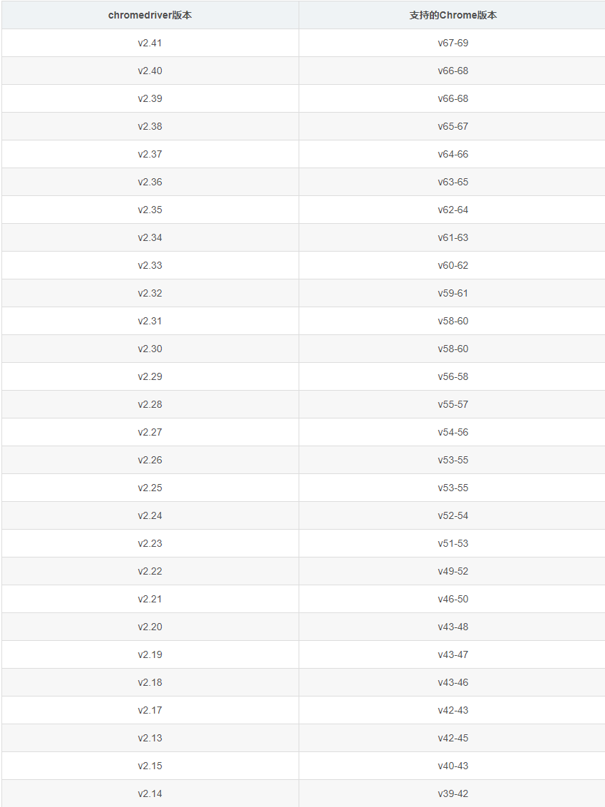 chrome版本与对应的谷歌驱动(chromedriver)