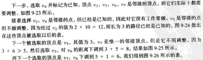 下表是每次更新的表格。在下面我直接把书上的讲解搬上来,书是《数据结构与算法分析:C语言描述》。