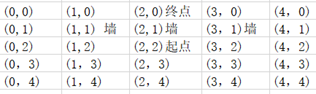 完成了上诉的模块后,项目就可以无BUG但是低效的跑了。我们来试一试,在一个5*5的地图中,起点在中间,为(2,2),终点在起点的上上方,为(2,0),设置三面围墙,分别是(1,1),(2,1),(3,1)。如下: