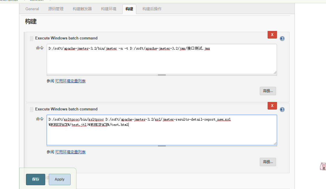 (2)D:/soft/xsltproc/bin/xsltproc D:/soft/apache-jmeter-3.2/xsl/jmeter-results-detail-report_new.xsl %WORKSPACE%/test.jtl>%WORKSPACE%/test.html