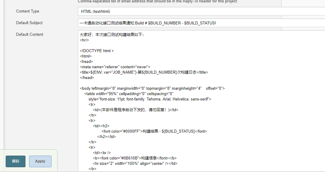 </table></body></html><b>${FILE,path="D:/jenkins/workspace/test/test.html"}</b>以上是jenkins的所有设置