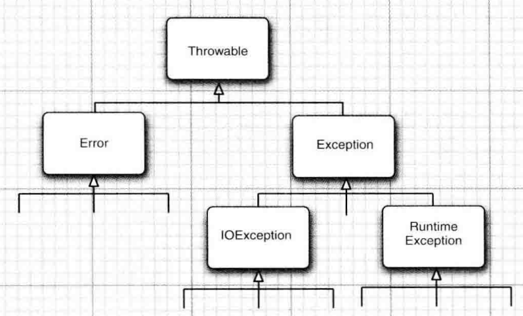 (2)异常从种类上来划分,分为非受查异常(派生于所有Error或RuntimeException)和受查异常