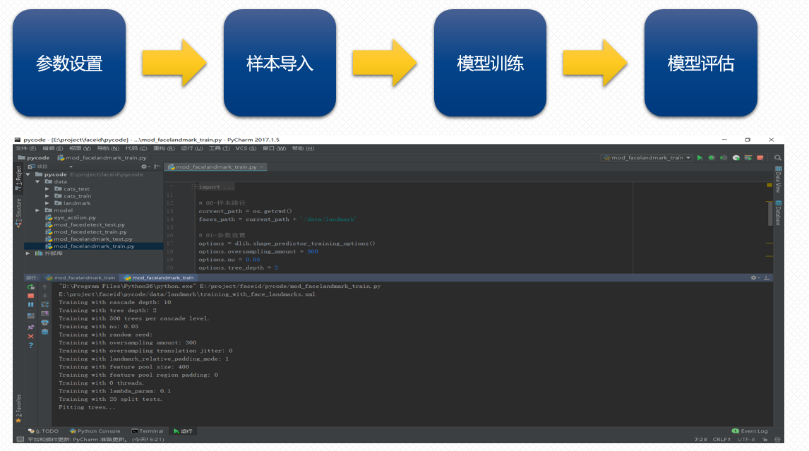 模型训练篇:基于人脸识别区域检测和人俩识别特征点标定两个应用场景,介绍数据样本采集、算法模型训练和算法模型测试的过程,让大家都人脸识别有一个完整的直观的认识;
