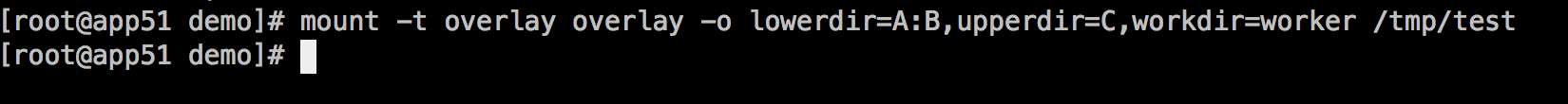 使用mount命令挂载overlayfs语法如下: