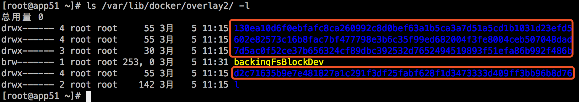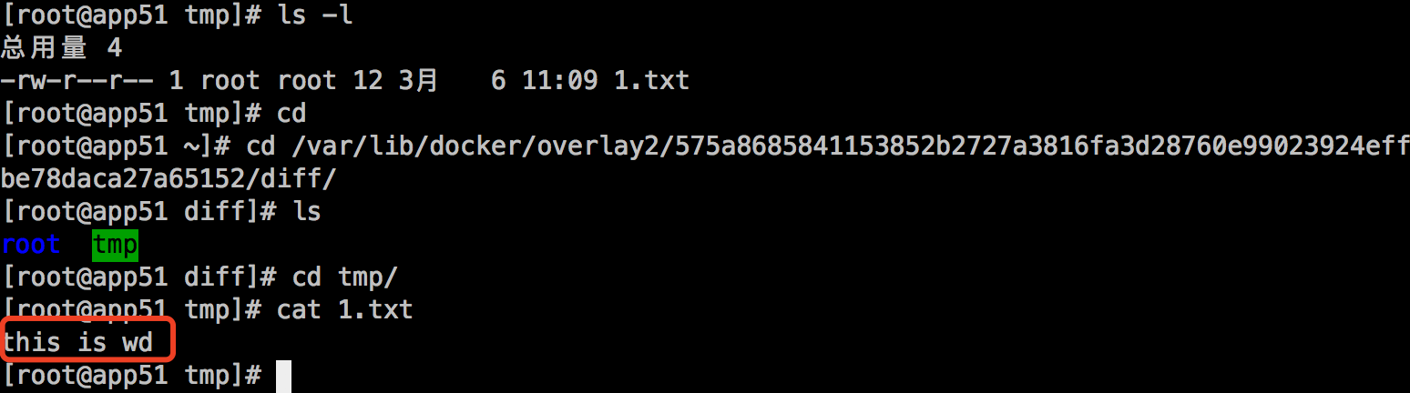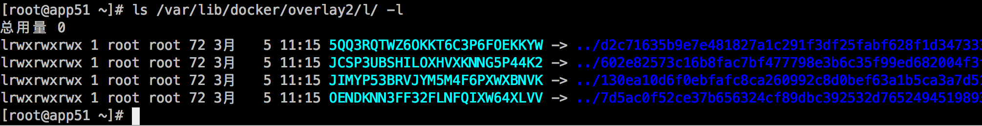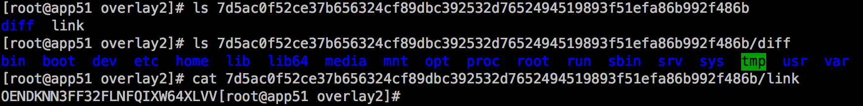 这里面多了一个l目录包含了所有层的软连接,短链接使用短名称,避免mount时候参数达到页面大小限制(演示中mount命令查看时候的短目录):