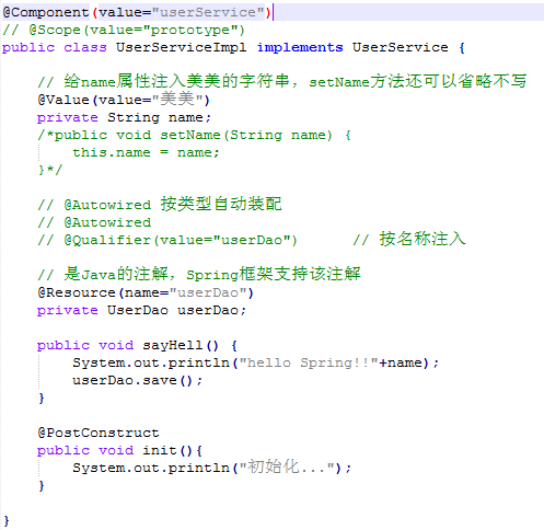 * 例如:如果UserServiceImpl的实现类中有一个属性,那么使用Spring框架的IOC功能时,可以通过依赖注入把该属性的值传入进来!!