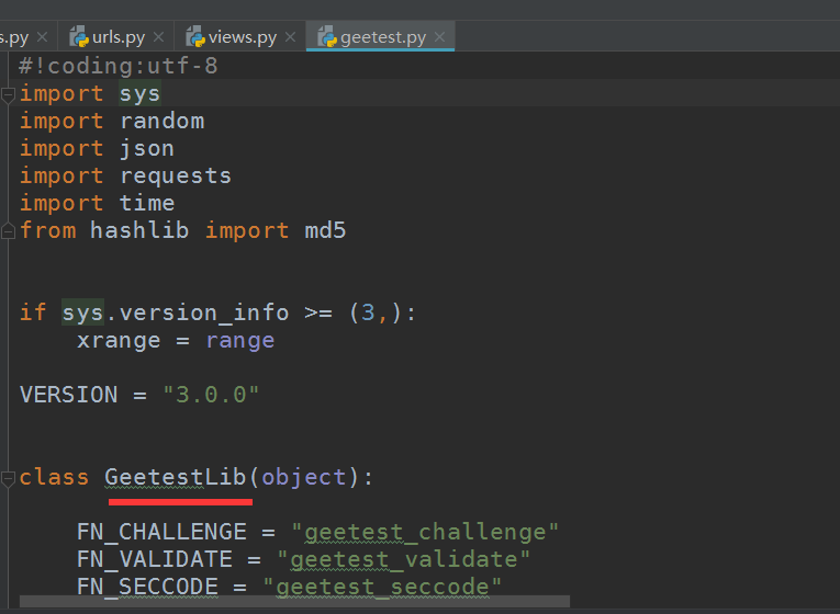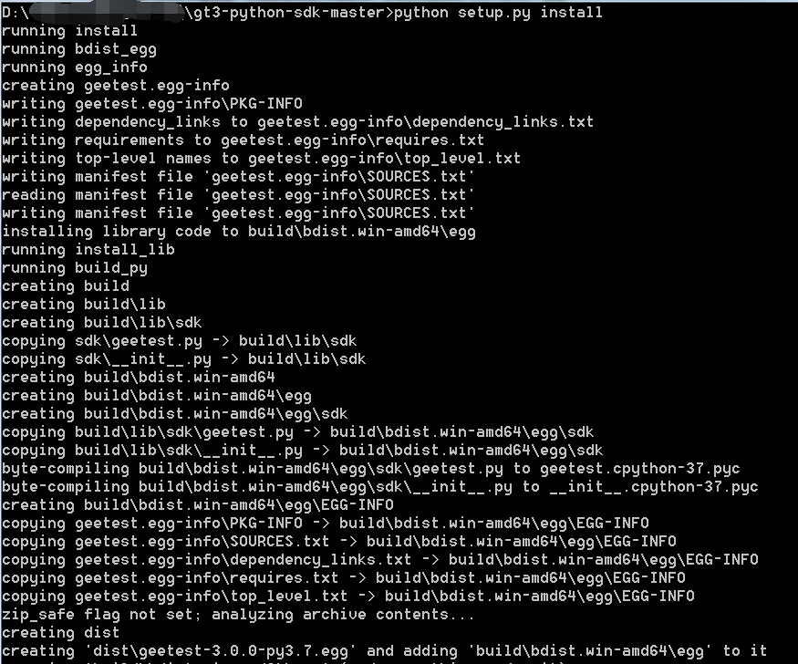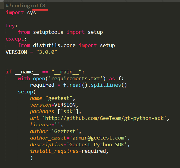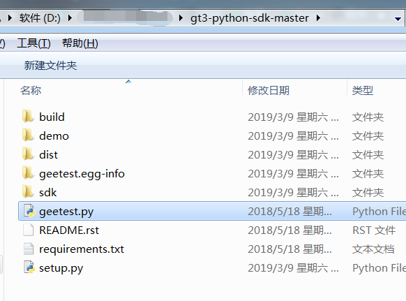 还有就是此时用的geetest文件并不是安装包根目录的geetest.py文件,这两个文件虽然名字一样,但是是完全不同的,根目录那个文件内容,它只是辅助的安装文件
