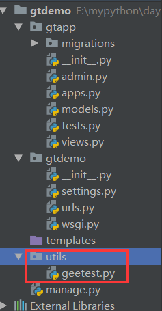将geetest.py文件复制到项目的目录里,我这创建了一个utils文件夹,放到此文件夹里: